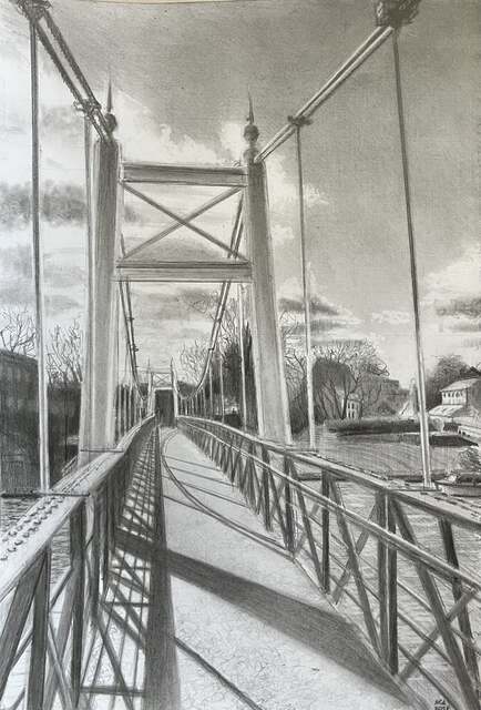 |  Size: 300mm x 420mm, Medium: Pencil on cartridge paper, Price: PoA Footbridge at Teddington lock | |