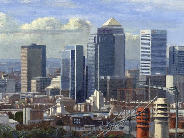 |  Size: 117cm x 30.5cm, Medium: Paper, Price: £185 LIMITED EDITION PRINT of 50: (Detail of) Docklands and London from Shooters Hill - signed, mounted and unframed on 300gsm paper using light fast inks | |