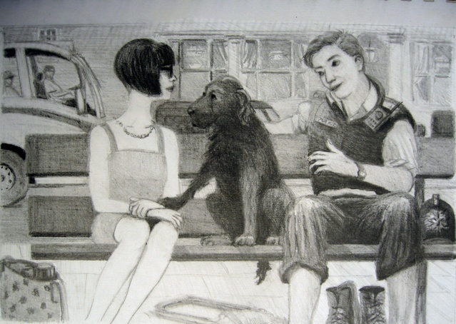 |  Size: x , Medium: Pencil, Price: Policeman sitting next to Mary with Gus looking quizzically | |