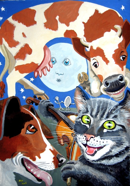 |  Size: 30cm x 45cm, Medium: Gouache on paper, Price: NFS Hey Diddle Diddle nursery rhyme | |
