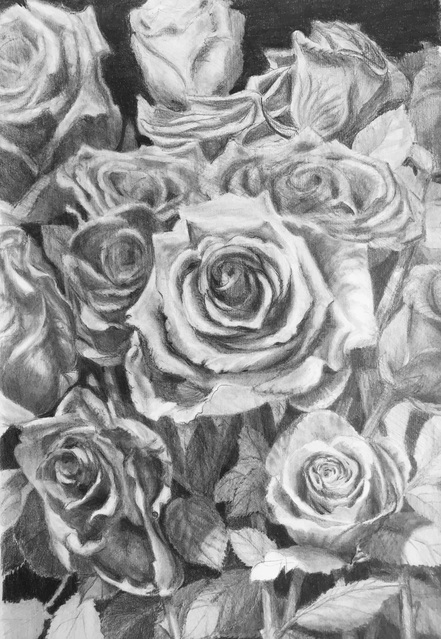 |  Size: 280mm x 420mm, Medium: Pencil and graphite on cartridge paper, Price: Study A lock-down study of roses 2020 | |