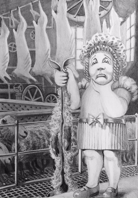 |  Size: 300mm x 420mm, Medium: Graphite and pencil, Price: Study Poor Mary has lost her little lamb in an abattoir, as well as her sense of \'chic\'. | |