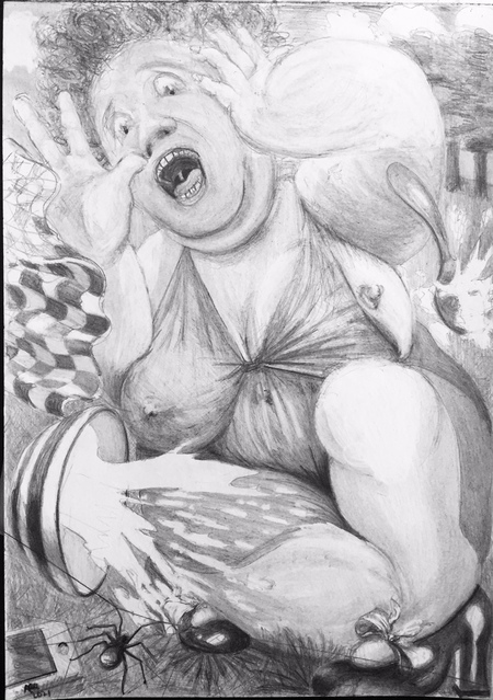 |  Size: 300mm x 420mm, Medium: Graphite and pencil, Price: study Little Miss Muffit is, frankly, a glutton at odds with nature | |