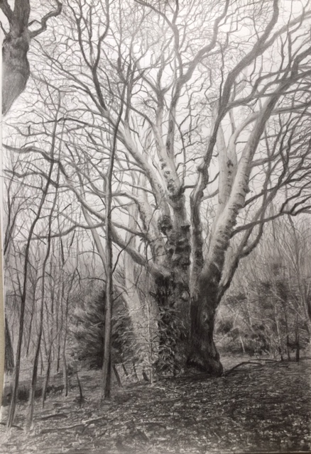 |  Size: 280mm x 420mm, Medium: pencil and graphite on cartridge paper, Price: poa Lone beech tree on Hampstead Heath | |