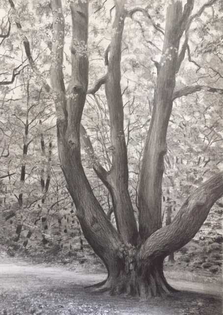|  Size: 280mm x 420mm, Medium: pencil and graphite, Price: poa Pollarded oak tree on Hampstead Heath in early spring | |