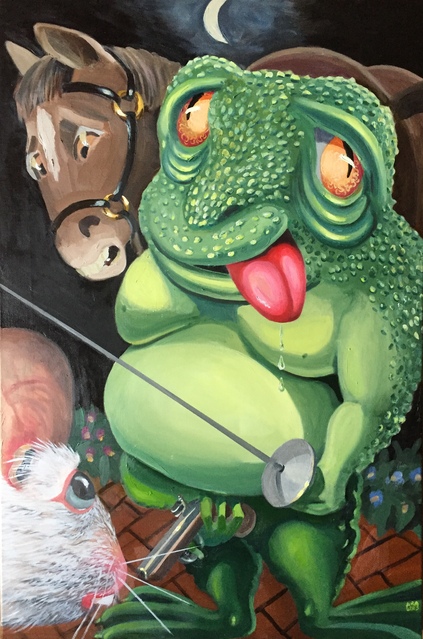 ![]() Size: 510mm x 760m, Medium: Oli in canvas, Price: PoA Mr Froggy went a courting\' and he did ride with a sword and a pistol right by his - up to Miss Mouse\'s door |