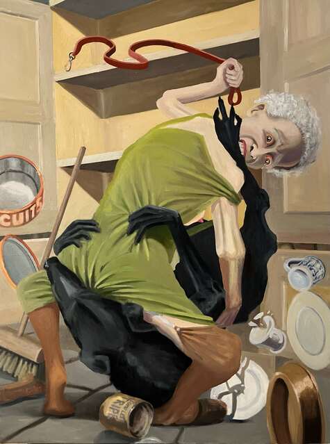 |  Size: 760mm x 1020mm, Medium: Oil on canvas, Price: PoA Old Mother Hubbard (Cardinal Wolsey) is a right ding-dong with poor doggy (Henry viii) as the cupboard is bare (unable to obtain a divorce from Catherine of Aragon) | |
