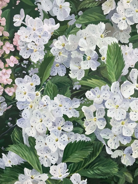 |  Size: 1000mm x 1000mm, Medium: Oil on canvas, Price: PoA Deborah\'s blackthorn blossom, Test Valley near Stockbridge 2024 | |
