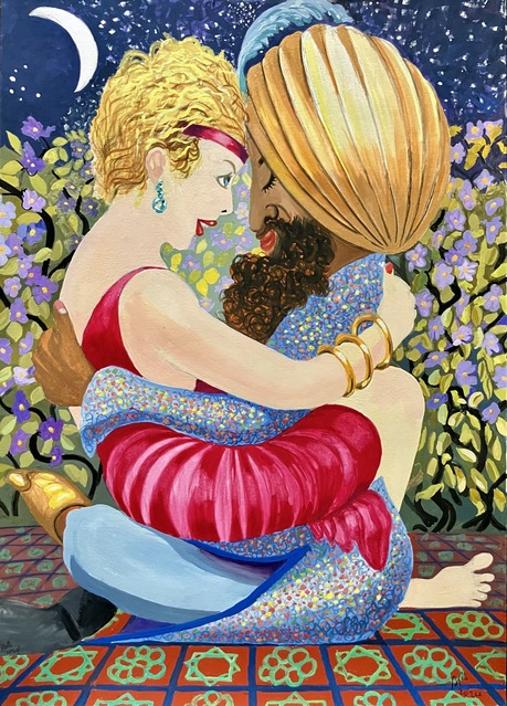 |  Size: 300mm x 420mm, Medium: Gouache on cartridge paper, Price: Commission Scheherazade finally runs out of stories and King Shahryar finally yields to his emotions. 2024 | |