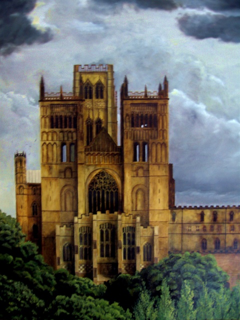 |  Size: 90cm/36 x 120cm/48, Medium: Oil on board, Price: £sold Durham cathedral west front from Silver Street | |